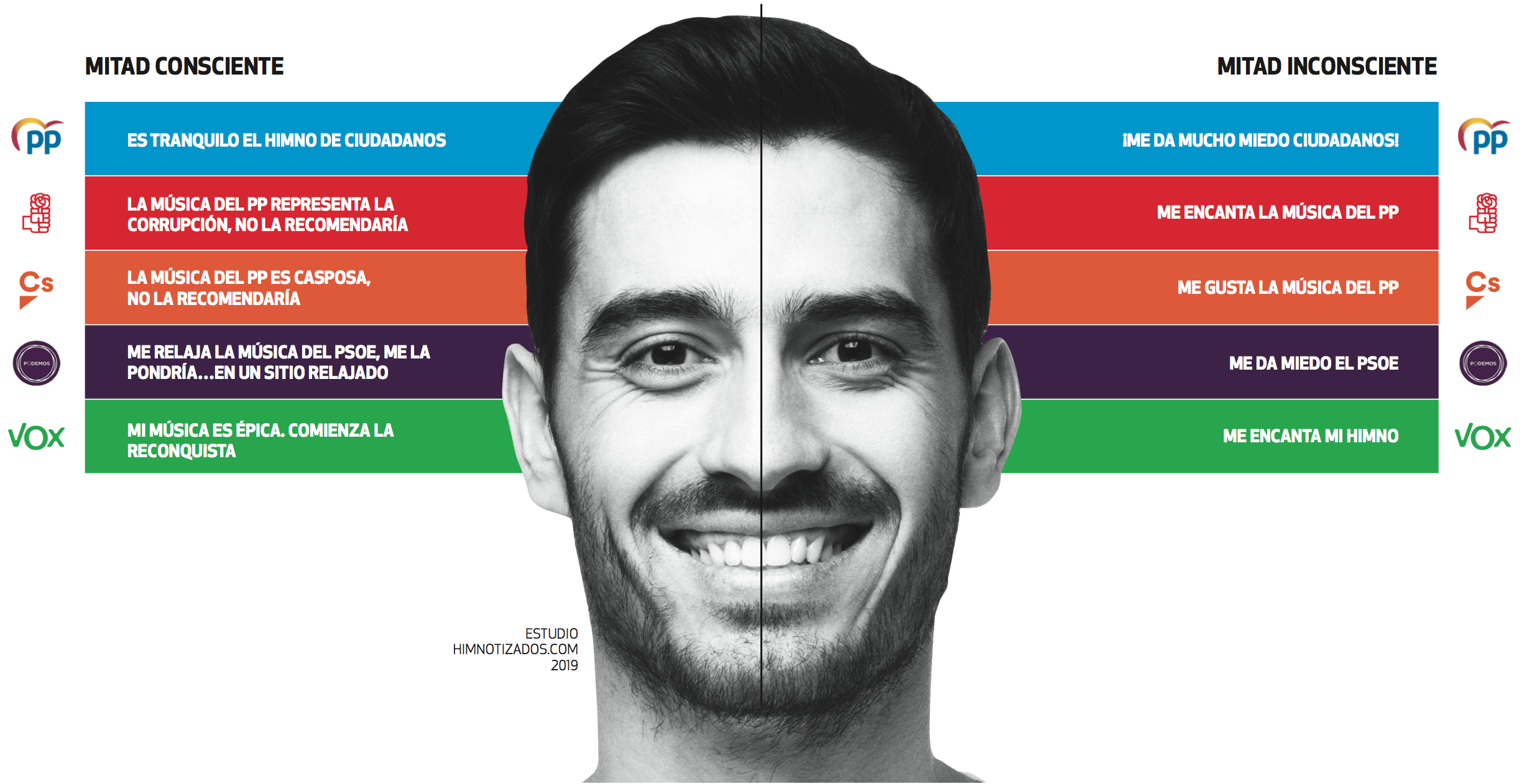 – El neuromarketing nos permite conocer que a los votantes de un partido a pesar de no reconocerlo, les puede gustar el himno del partido contrario más que el suyo propio.